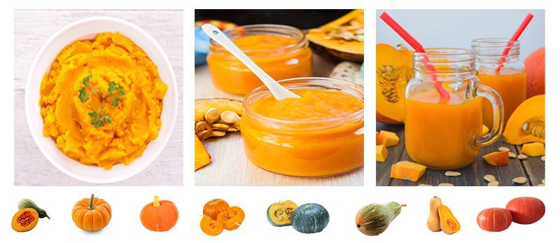 호박 퓨레 가공 라인의 공정에는 호박에서 줄기, 껍질 및 씨앗을 세척하고 분리하는 과정이 포함됩니다. 그런 다음 단맛을 내기 위해 요리합니다. 마지막으로 호박은 우리 모두가 알고 사랑하는 곱고 부드러운 농도가 될 때까지 혼합됩니다. 상업용 제품으로서 멸균 및 포장됩니다.